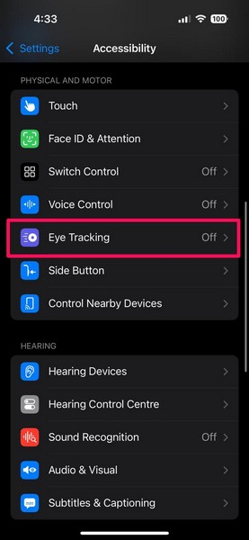 Kövesse tehát az alábbi lépéseket az Eye Tracking letiltásához iPhone-ján iOS 18 rendszerben:
