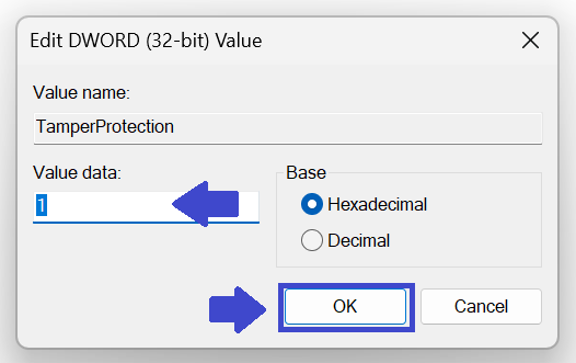 2. módszer: Engedélyezze a Tamper védelmét a Registry Editor segítségével