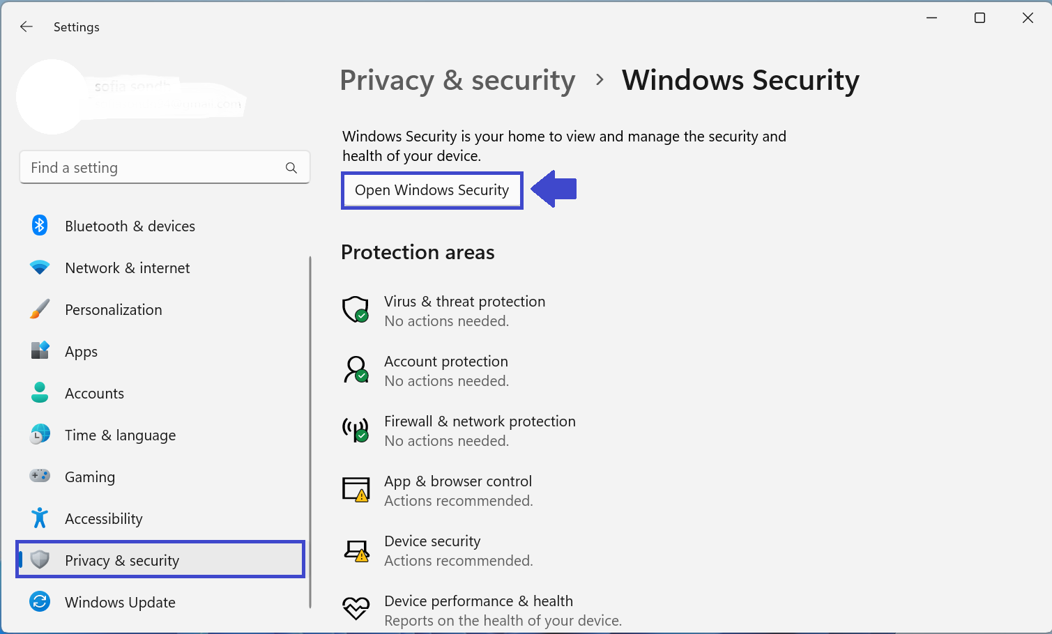 2. lépés:Most kattintson a Windows Security megnyitása elemre.