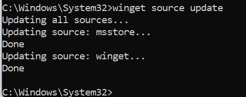 3. lépés: Most az alkalmazások importálása előtt frissítenie kell a Winget forrásokat a következő parancsra, és nyomja meg a gombot, és nyomja meg aBeírparancs: