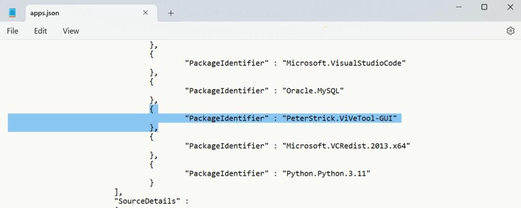 Lehet, hogy nem igényel minden alkalmazást a listán az új PC -n vagy a régi PC -n. Következésképpen eltávolíthatja az összes nem kívánt alkalmazáscsomagot a JSON fájlból. Így csinálod:
