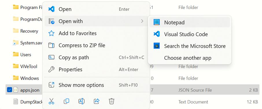 4. lépés:Nyomja meg aBeírA JSON formátumú alkalmazások kulcsát és az alkalmazások listáját a C meghajtón készítik.