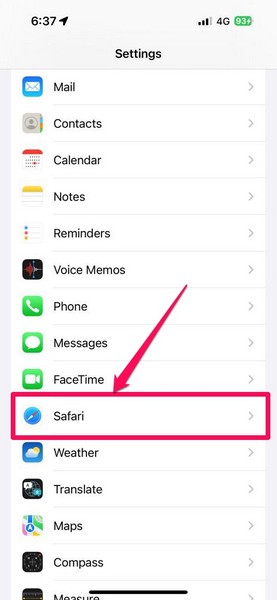 2.Keresse meg aSzafariopció a listán ésKoppintson rá a kinyitáshoz-