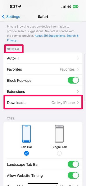 Most, ha kíváncsi, hogy megváltoztathatja -e az alapértelmezett mentési helyet a letöltött fájlokhoz az iPhone -on, nézd meg a következő részt.