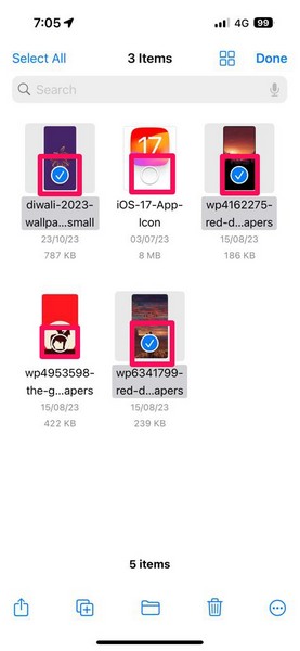 9. Érintse meg a kör alakú körvonalat A fájlokhozhogy törölje, hogy kiválasztja őket.