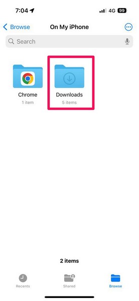 Az internetről letöltött fájlok a mobil webböngészők segítségével egy dedikált letöltési mappába kerülnek az Apple Files alkalmazásban az iPhone alkalmazásban. A letöltött fájlokat az iPhone szakaszban található a fájlok alkalmazásában az iPhone -on található.