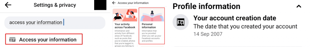 - AlattA fiók létrehozásának dátuma, látnia kell a Facebookhoz való csatlakozás dátumát.