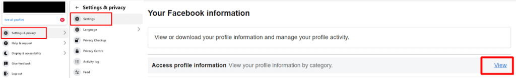 - MellettHozzáférés a profilinformációkhoz, kattintsonKilátás.