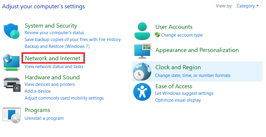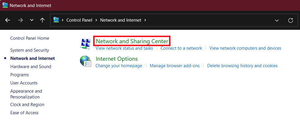 3.Kattintson ráHálózat és interneta kezelőpanelen.