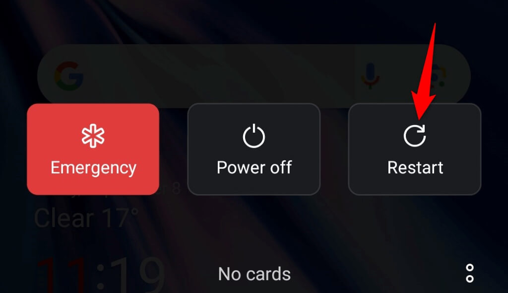 - Válassza kiIndítsa újramenüben a telefon újraindításához.