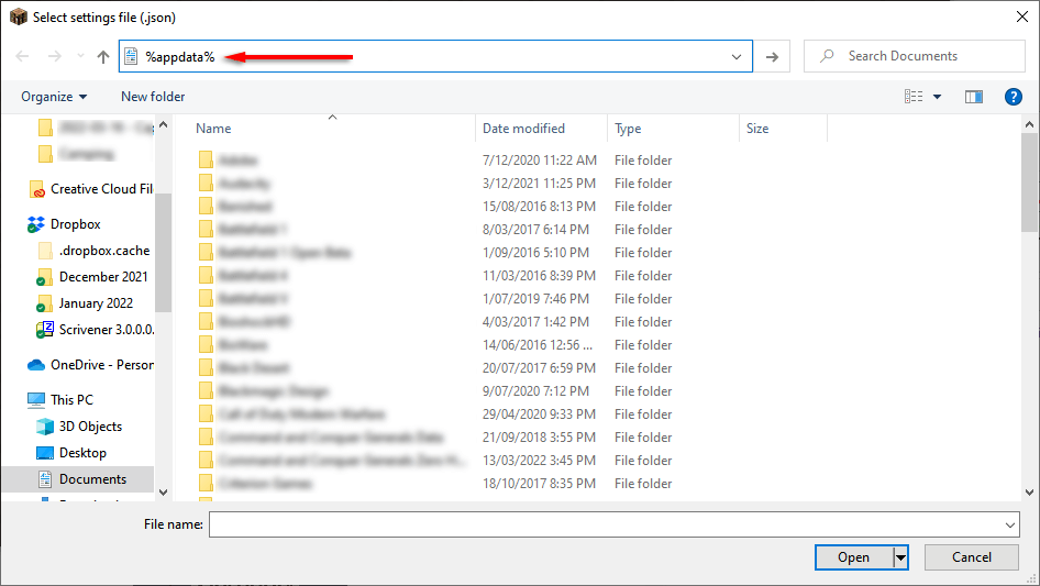 - A címsorba írja be%appdata%.