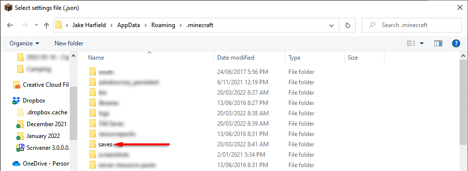 - Kattintson duplánmenti. Itt tárolják a Minecraft világmappáit.