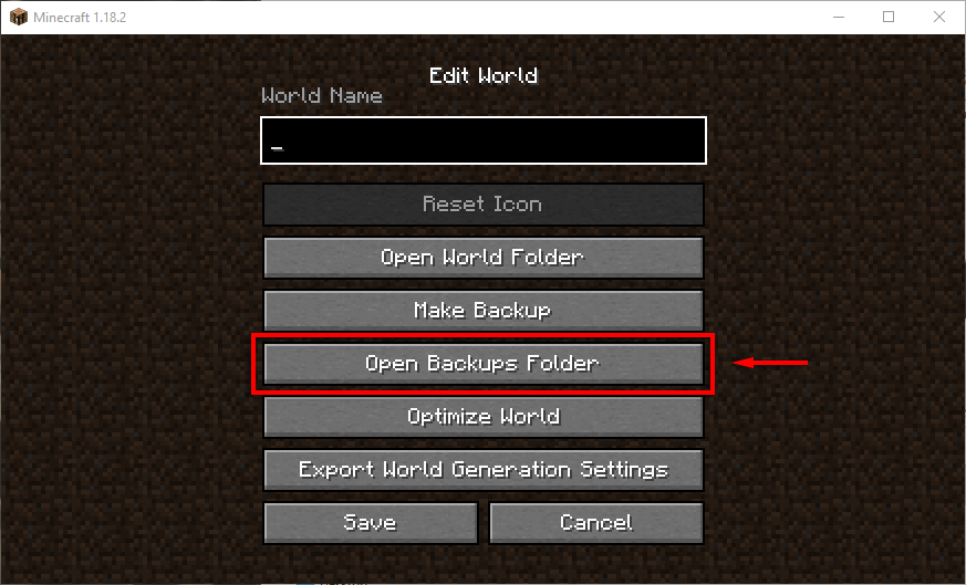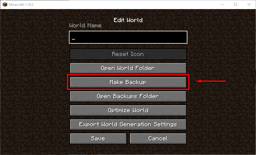 Jegyzet:Javasoljuk, hogy mielőtt ezt megtenné, készítsen biztonsági másolatot a mentett játékairól, mivel ez törli a helyi mentéseket. Ezt megteheti a játékban, ha kiválasztja a világát, és kattintson ráSzerkesztés,és kiválasztvaKészítsen biztonsági másolatot. A biztonsági másolatok a .minecraft mappában, egy második mappában, az úgynevezettbiztonsági mentések.