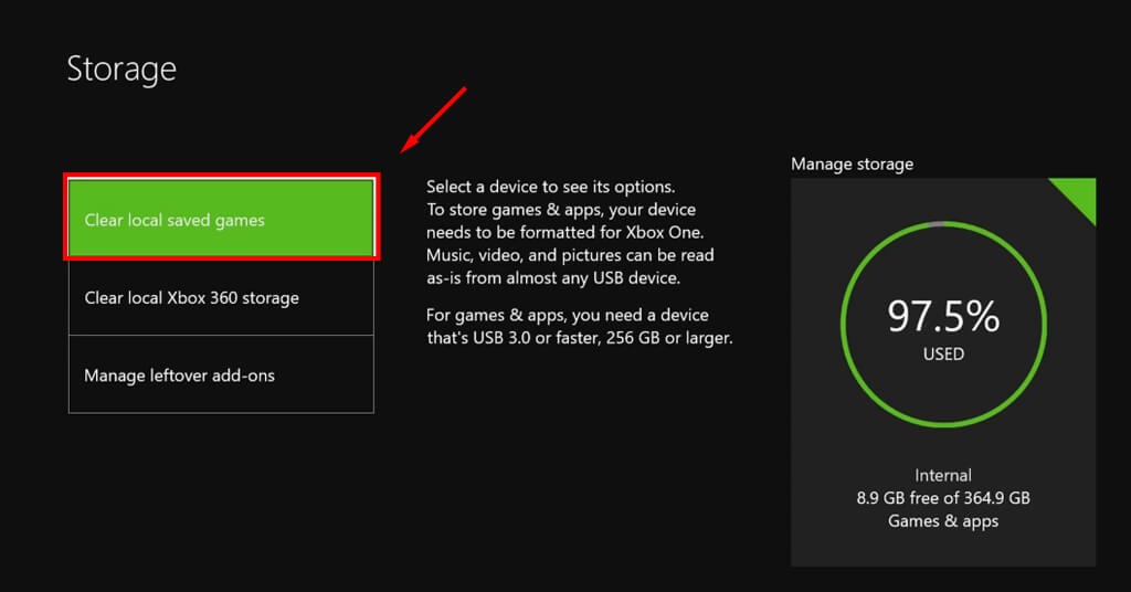 - A mentett játékadatok törléséhez navigáljon ideRendszer>Tárolás>Törölje a helyi mentett játékokat.