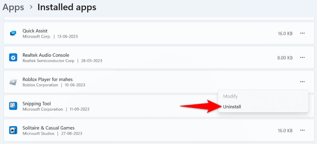Ha semmi más nem működik, az utolsó lehetőség a Roblox alkalmazás eltávolítása és újratelepítése a számítógépen, hogy megoldja az alapvető problémákat.