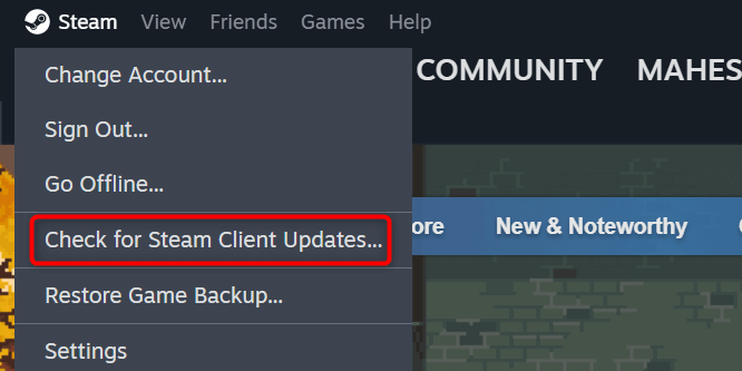 - VálasszonGőz>Ellenőrizze a Steam kliens frissítéseitA menüsorban.