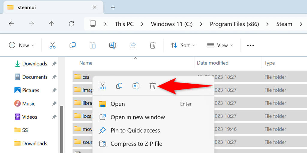 Egyes felhasználói jelentések azt sugallják, hogy törlik a fájlokat aSteamuiA mappa megoldja a Steam Game Library -t, hogy ne töltse be a problémát. Ez a mappa tartalmazza a Steam felhasználói felület testreszabását. Ezek a fájlok megsérülhetnek, így a könyvtár képernyője nem nyílik meg.
