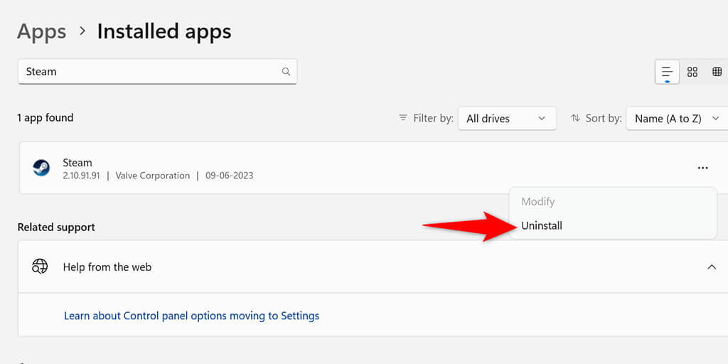 - LeletGőz, válassza ki az alkalmazást, és válassza kiEltávolít-