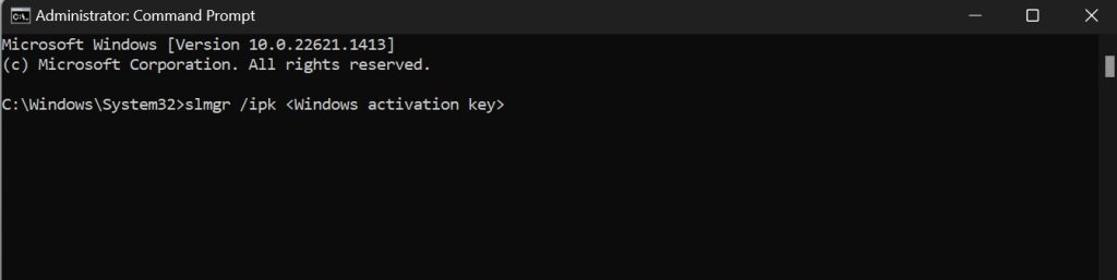 5.A fent említett lépések után dönthet úgy, hogy újra telepíti a Windows 11-et számítógépére vagy laptopjára. Ezután megadhatja a Windows mentése kulcsot a Windows telepítése közben, vagy beírhatja a parancsotslmgr /ipk<Windows activation key>a Windows parancssorban.