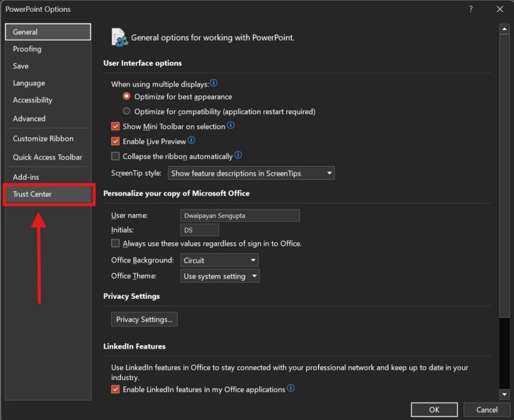 A Windows 11 PowerPoint alkalmazásának van néhány előre beállított megbízható helye, amelyek segítségével .ppt fájlokat menthet számítógépre vagy laptopra. Ha tehát „Hiba történt, miközben a PowerPoint mentette a fájlt” hibaüzenetet tapasztal, miközben a PowerPoint-fájlt új helyre vagy meghajtóra menti, a Megbízható helyek listához való hozzáadása segíthet megoldani a problémát.