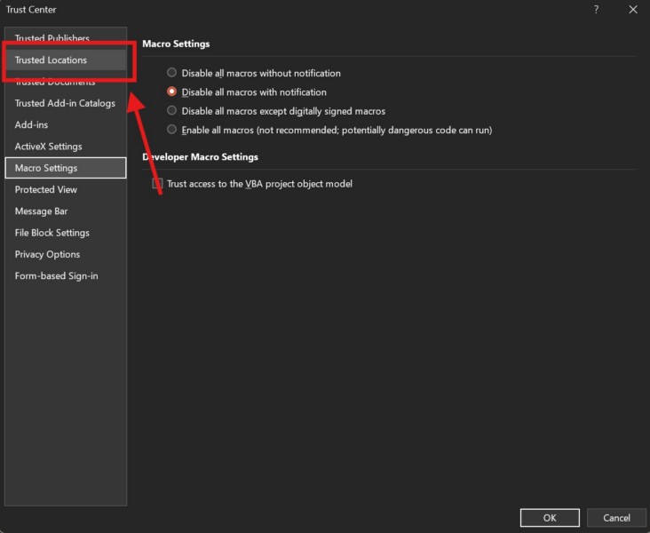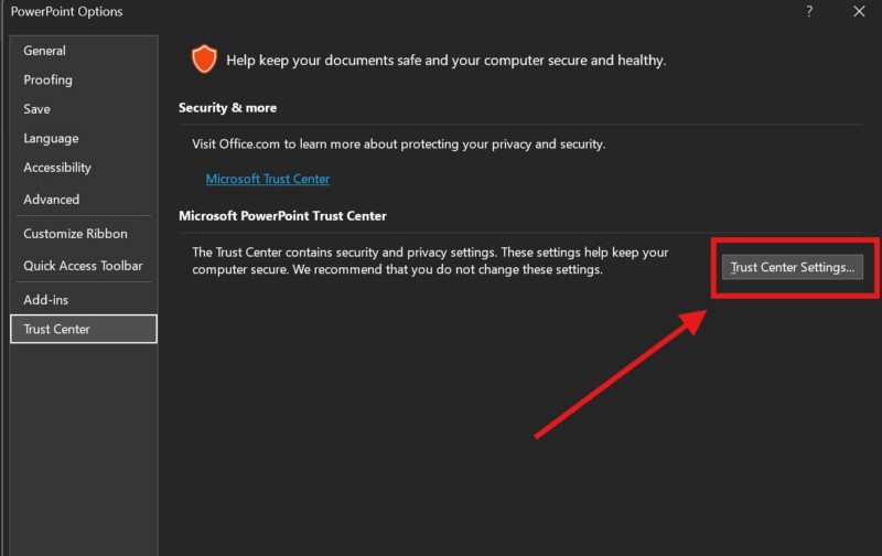 Kövesse tehát az alábbi lépéseket a Megbízható helyek beállításainak szerkesztéséhez a PowerPoint alkalmazásban, és azonnal hozzáadja az új helyet a listához: