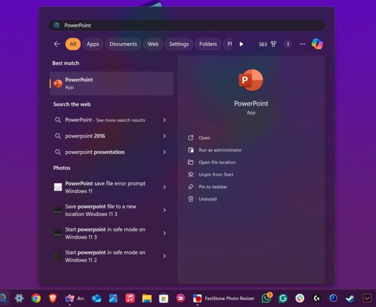 Most néhány módszerrel megnyithatja a PowerPoint alkalmazást csökkentett módban Windows 11 számítógépén vagy laptopján. Tekintse meg őket a következő alfejezetekben.