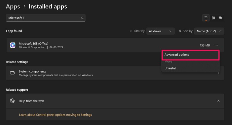 9. Telepítse újra a Microsoft 365 alkalmazást Windows 11 rendszeren