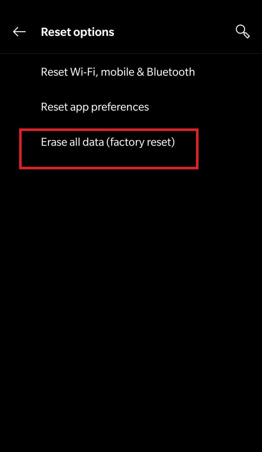 3. lépés:Válassza a lehetőségetMinden adat törlése (gyári beállítások visszaállítása)