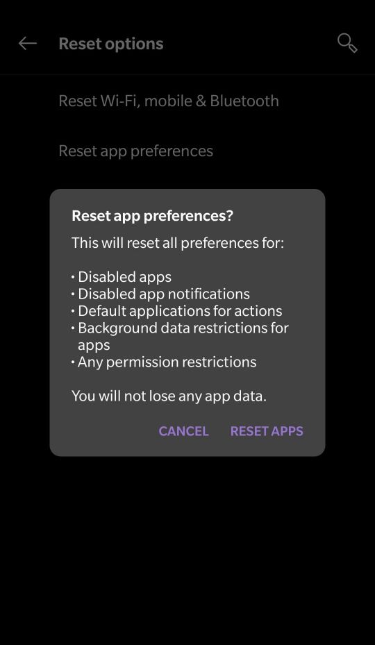 Adaptív fényerő-problémák léphetnek fel, ha nemrégiben módosította valamelyik alkalmazás engedélyét, vagy letiltotta a rendszeralkalmazásokat. Megpróbálhatja alaphelyzetbe állítani a telefon alkalmazásbeállításait, hogy újrakezdje, és megoldja a lehetséges problémákat a probléma megoldásaként.