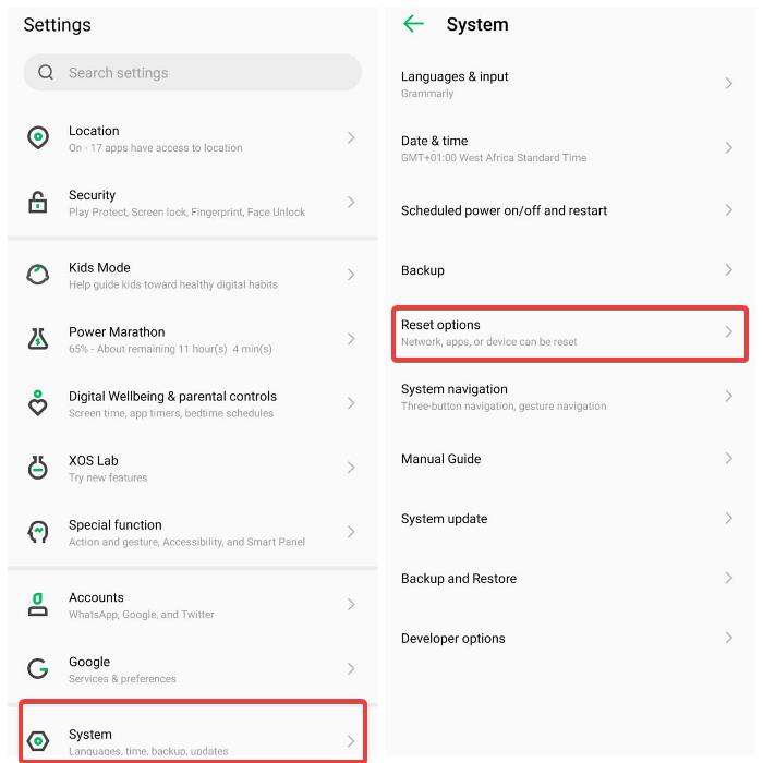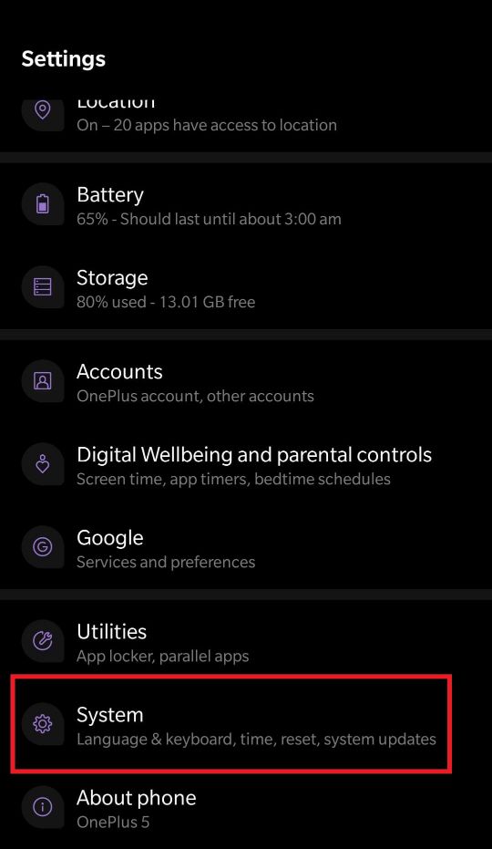 2. lépés:Görgessen le, és érintse meg a lehetőségetRendszer vagy A telefonról.(Eszköztől függően változik)