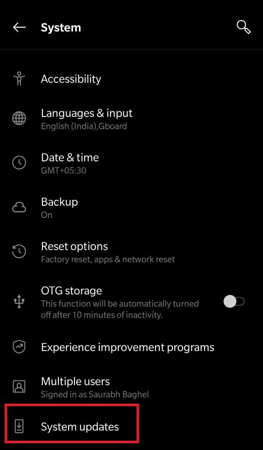 3. lépés:Most kattintson ráRendszerfrissítésekvagySzoftver frissítés.