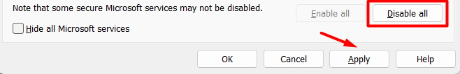 4.Miután az összes Microsoft szolgáltatás elrejtett, válasszonTiltsa le az összesetAz összes harmadik fél alkalmazás letiltása.
