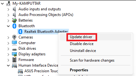 1.NyitottEszközkezelőa számítógépén, és bővítseAdapterek megjelenítésebenne a mellette lévő nyílra kattintva.
