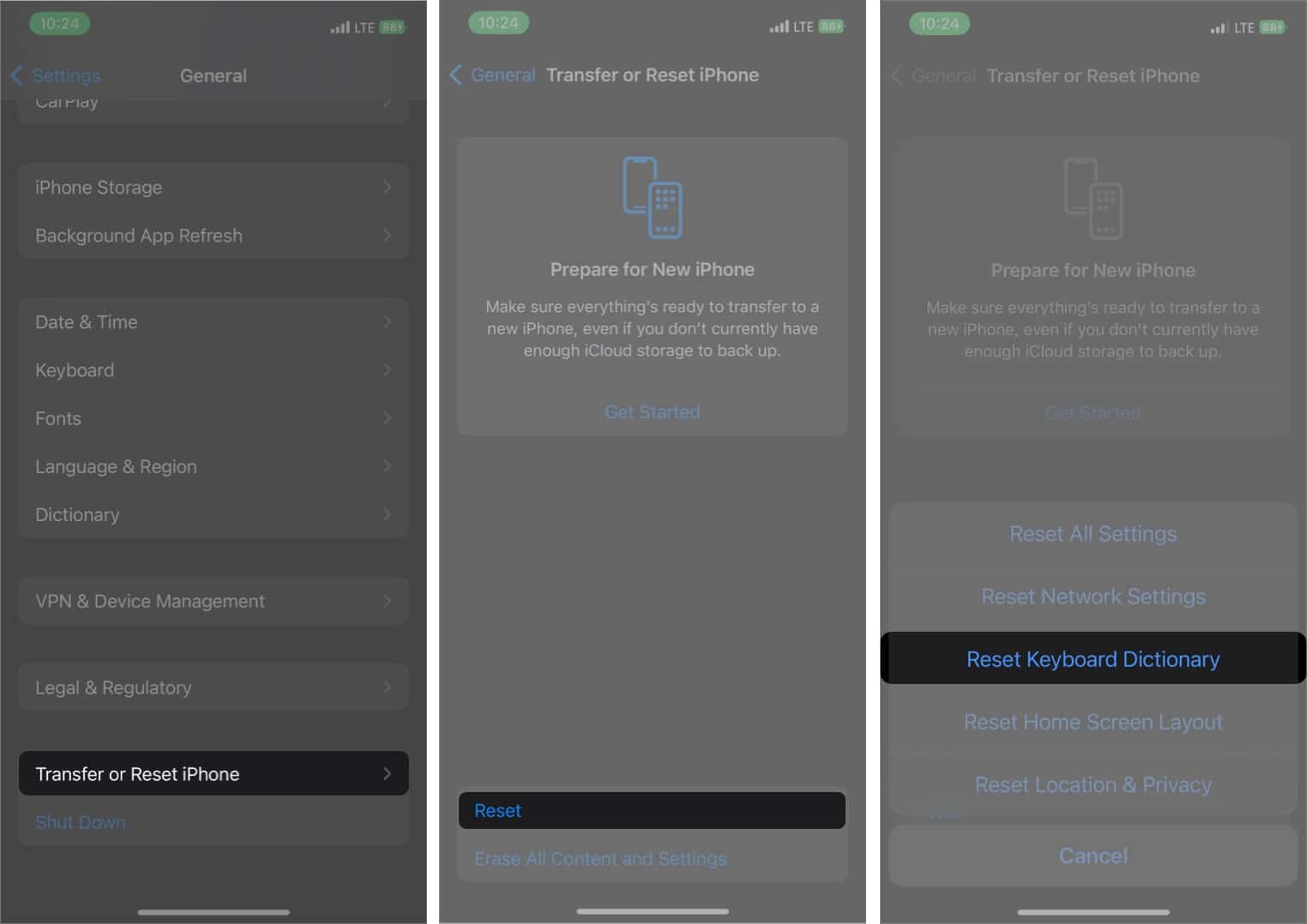 4. Állítsa vissza a billentyűzet szótárát az iPhone készüléken