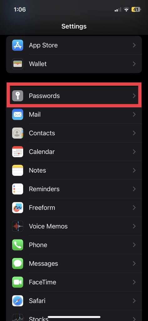 1.Menj az iPhone -raBeállításokÉs látogasson elJelszavakbeállítások.