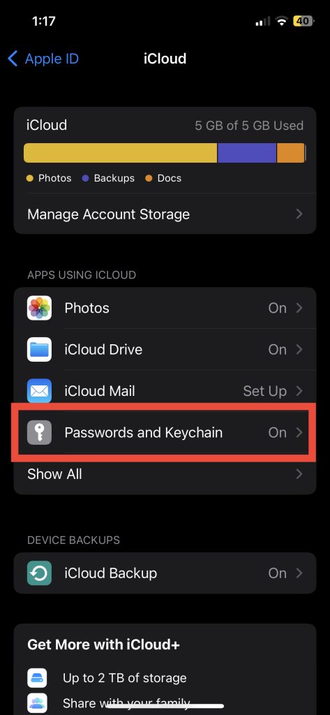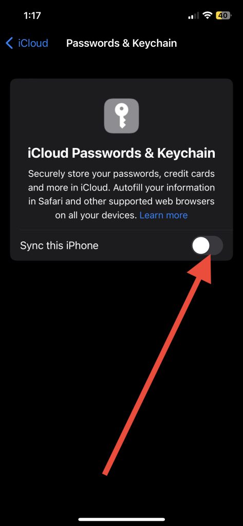 Gondoskodjon arról is, hogy az Autoill jelszavak ICLoud kulcstartása engedélyezve legyen. Az iCloud kulcstartó beállításával szinkronizálhatja jelszavát az összes Apple eszközön, még nagyobb kényelmet és rugalmasságot biztosítva. Ha ki van kapcsolva, akkor itt van, hogyan lehet bekapcsolni.