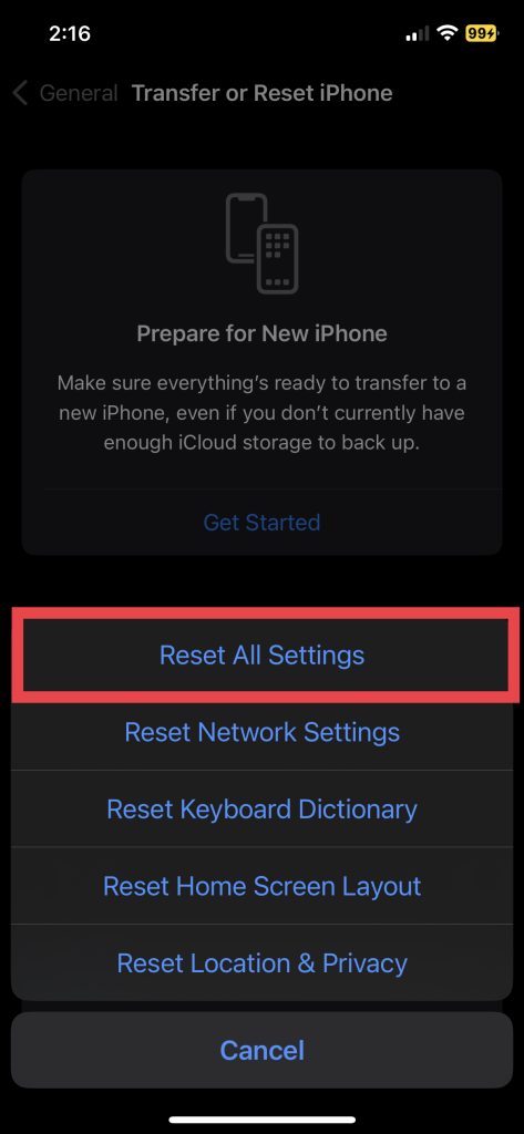 Ha továbbra is problémái vannak az Autoill jelszavakkal az iPhone -on, még az eszköz frissítése után is, akkor érdemes kipróbálni az iPhone -beállítások visszaállítását. Ez nem törli az adatait, hanem visszaállítja az eszközt az alapértelmezett beállításokba.