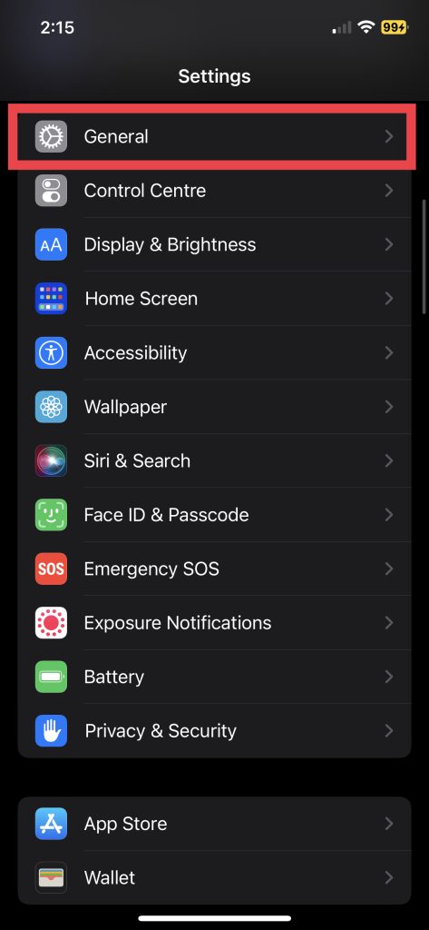 1.Nyissa meg az iPhone -tBeállításokés elmegyÁltalános-