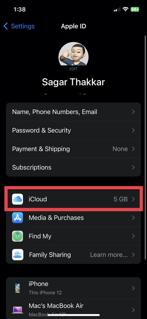 2.Érintse meg a nevét (Apple ID menü), az első lehetőség.