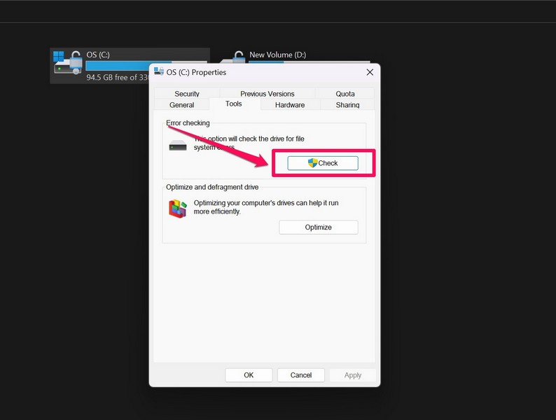 7. Futtassa a chkdsk -t a Windows 11 -ben