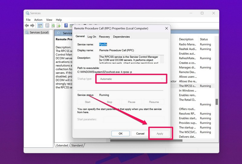 5. Győződjön meg arról, hogy az RPC automatikusan van -e beállítva a Windows szolgáltatásokban