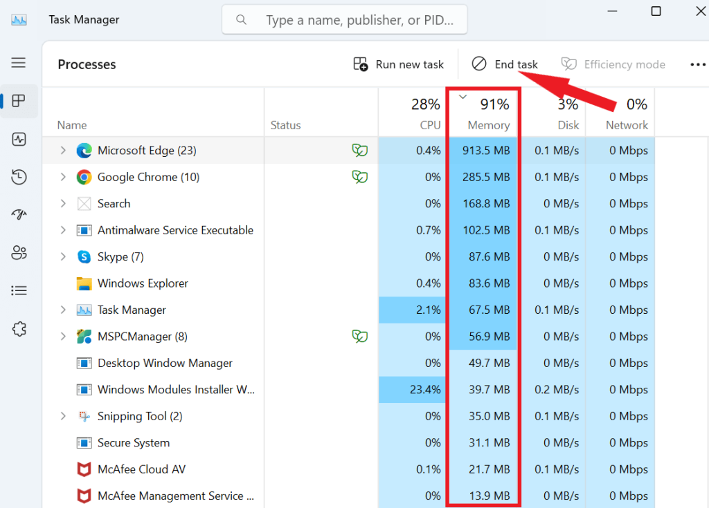 Az elégtelen memória a Blender összeomlásának gyakori hibája. Egy sor alkalmazás egyidejű futtatása kimerítheti a számítógép RAM-ját, ami a Blender esetleges összeomlásához vezethet. A Blender indításkor történő összeomlásának elkerülése érdekében az alábbi lépésekkel vegye át az irányítást a memóriaéhes programok felett:
