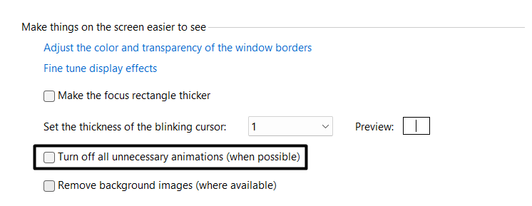7. Engedélyezze a Minden felesleges animáció kikapcsolása opciót