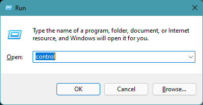 1.Nyissa meg aFuttassa a parancsmezőta Windows + R használatával írja beellenőrzésa keresőmezőben, és nyomja meg a gombotEnter.