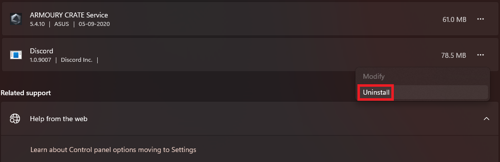 Ha semmi sem működik, próbálja meg újratelepíteni a Discord alkalmazást. Egy friss telepítés megoldja az ideiglenes és sérült fájlok által okozott összes problémát. Kövesse az alábbi lépéseket a Discord alkalmazás újratelepítéséhez Windows 11 rendszerű számítógépére: