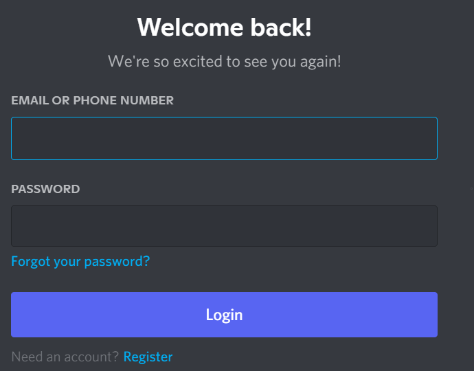 Tartsa kéznél a Discord Fiók bejelentkezését, mivel szükség lesz azokra, akik bejelentkeznek egy alternatív verzióba.