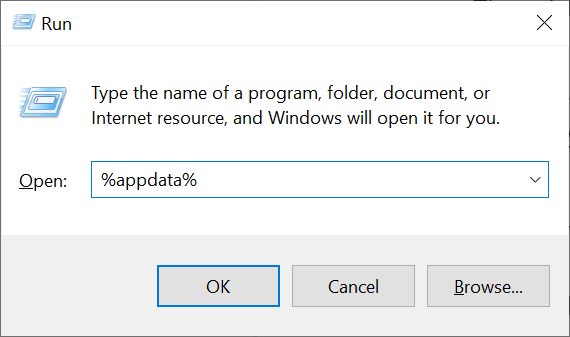 - Írja be a következőket a RUNBOW -ba, és nyomja meg a gombotBeír: %app data %