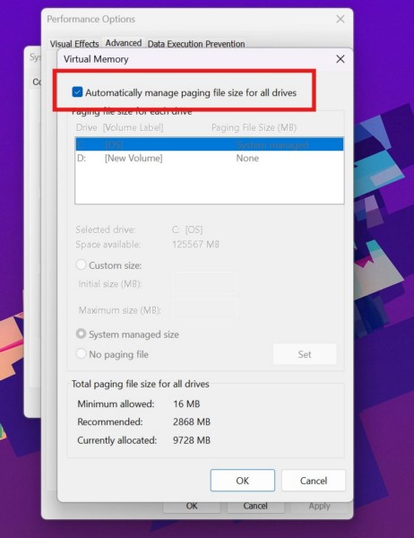 5. Ellenőrizze az oldalfájl beállításait a Windows 11 -en
