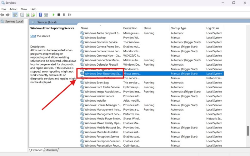 Egy másik megelőző intézkedés, amely segít elkerülni a „Dump File Creation Creation hibája miatt a dump -létrehozás során” hibát, a Windows 11 PC -n vagy a laptopon történő hibája annak biztosítása, hogy a Windows hibajelentési szolgáltatás megfelelően konfiguráljon. A Windows Hiba Reporting Service egy alapvető Windows háttér -szolgáltatás, amely lehetővé teszi a rendszer számára, hogy szükség esetén dump fájlokat hozzon létre.