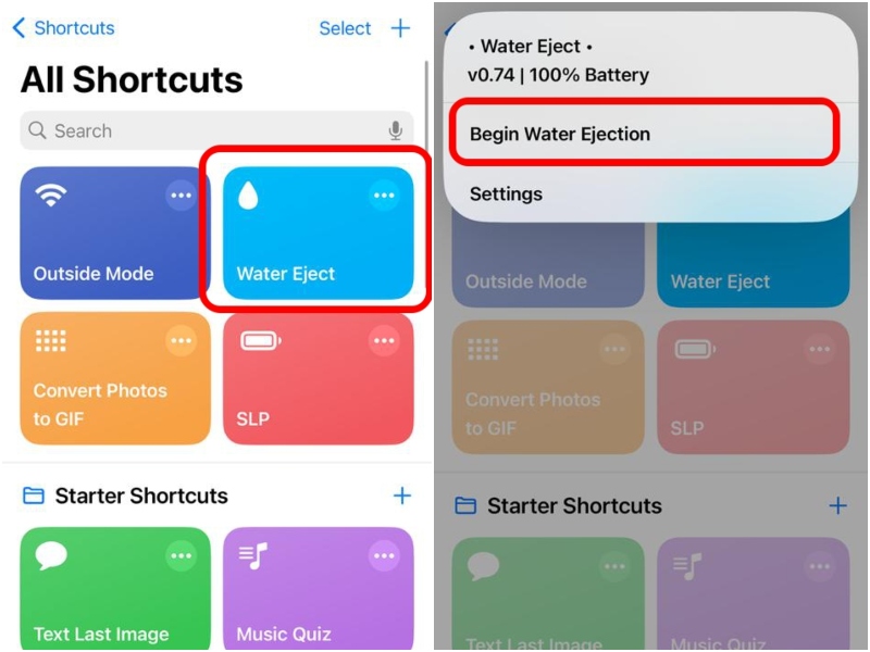 Ebben az esetben az iPhone -on a Nifty Water MEJECT SIRI parancsikont felhasználhatja az eltömődött vizet a fül hangszóróból történő kiszedésére. TudszHasználja ezt a linket-hozAdja hozzá a vízkibocsátási parancsikontaz iPhone parancsikonok alkalmazásához.